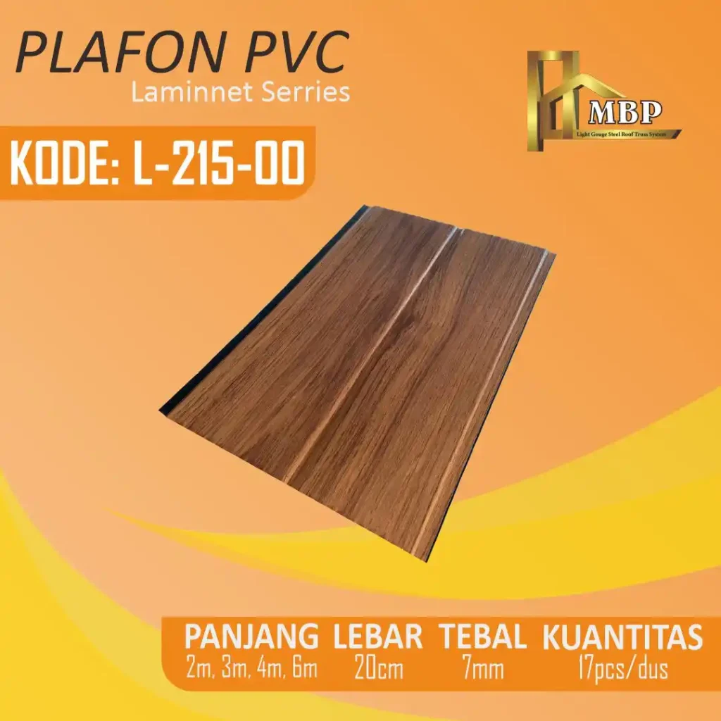 Plafon PVC berlapis laminate doff dengan tampilan elegan dan modern.